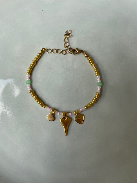 Bead Hearts Armband roze/groen