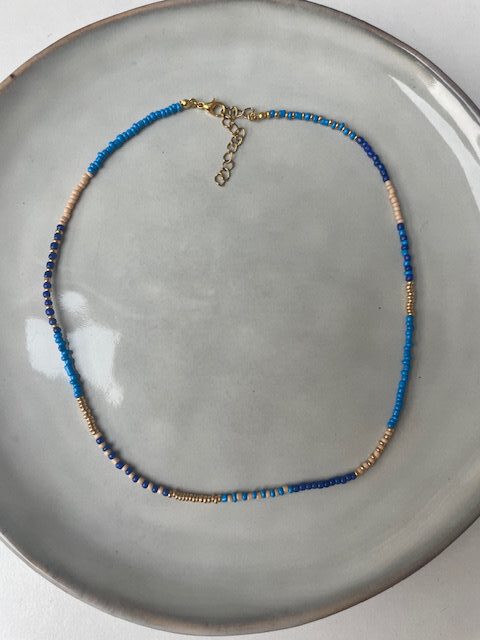 Beads Ketting blauw/goud